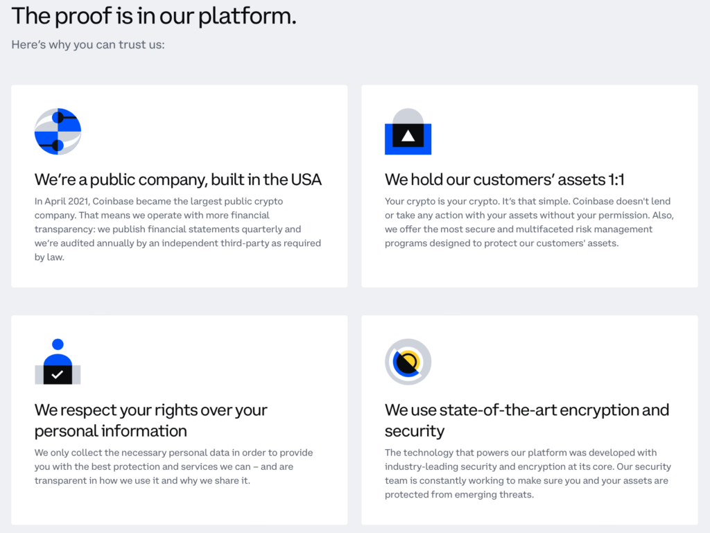 It’s fully licensed, regulated, and publicly traded (NASDAQ: COIN), meaning it has more oversight than most exchanges. 98% of customer funds sit in cold storage, offline and out of hackers’ reach.